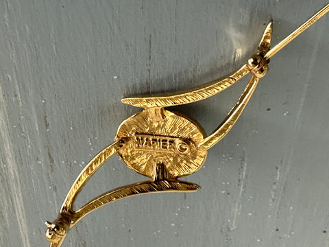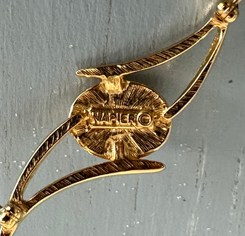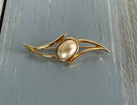 Beautiful Napier Vintage Brooch Gold Tone & Faux Pearl Cabochon