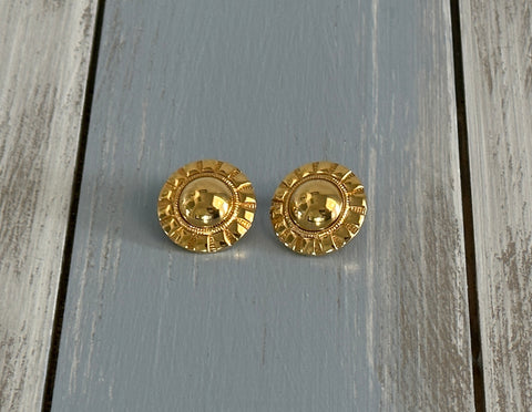 Fabulous Vintage Pierced Earrings Shiny Gold Tone Metal