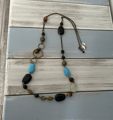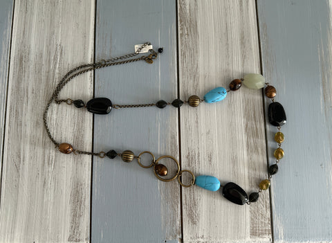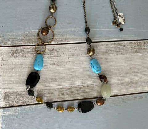 BEADS ARE COPPER TONE, BROWN, ROOT BEER, GOLD, TURQUOISE, GOLD & BLACK