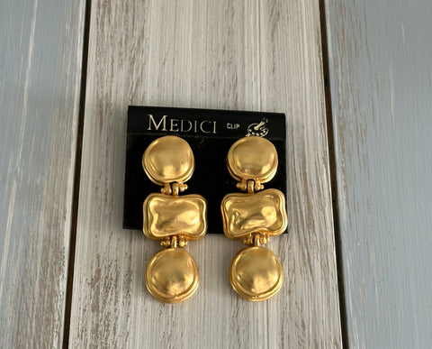 Medici Vintage Statement Clip On Earrings Big Bold Matte Gold Tone Drops