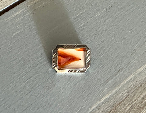 THE CENTER IS PROBABLY AGATE OR SOME KIND OF STONE PERHAPS EVEN ART GLASS