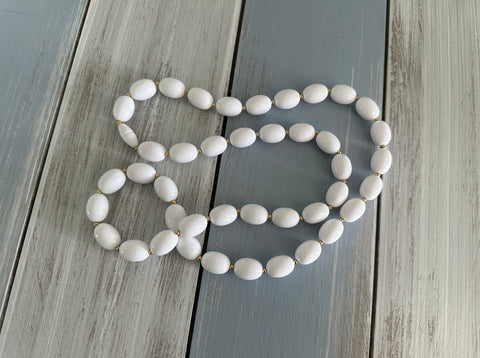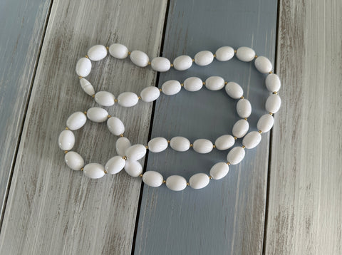 WHITE OVAL BETTER PLASTIC & SMALL GOLD TONE SPACER BEADS