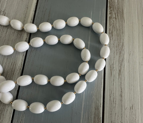 Vintage Fantastic Longer Length White & Gold Tone Beaded Necklace